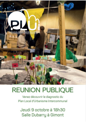 Dans le cadre de l'élaboration du Plan Local d'Urbanisme Intercommunal, une réunion publique est organisée le jeudi 9 octobre à 18h30 à la salle Dubarry de Gimont.